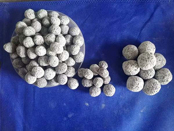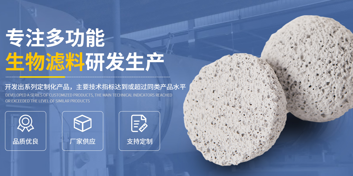 公司生产的多功能活性生物滤料,采用硅、钙等多种矿物质为主要成份,复配各种功能性金属元素,经特殊工艺制备而成;其配方设计及生产工艺为国内先进,拥有多项发明专利。产品具有轻质高强、比表面积大、孔隙率高、微生物挂膜速度快,脱氮除磷效果佳、不易板结等优异性能。